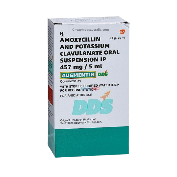 Augmentin Syrup DDS 5.4g is a broad-spectrum antibiotic made for kids. It battles resistant bacterial infections, such as those that affect the lungs, ears, urinary tract, and skin, with Amoxicillin and Clavulanate. This makes sure that recovery is safe and successful.