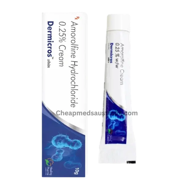 Dermicros Cream contains Amorolfine and is used to treat fungal skin and nail infections. It works by killing the fungus and helping reduce itching, redness, and swelling. Apply a thin layer on the affected area once or twice daily as directed by a doctor. Some people may experience mild burning, itching, redness, or irritation. Regular use helps clear the infection and supports healthy skin and nails.