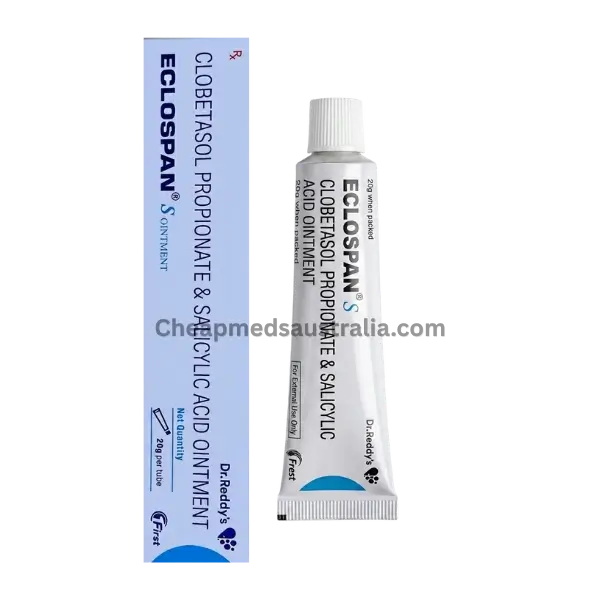 Eclospan S Ointment combines clobetasol and salicylic acid to treat psoriasis and severe skin conditions. It helps reduce inflammation, remove scales, and relieve itching. Apply a thin layer to the affected area as directed. It is commonly used for dry, thick, and scaly skin issues. Some people may experience mild side effects like burning, redness, or irritation at the application site.
