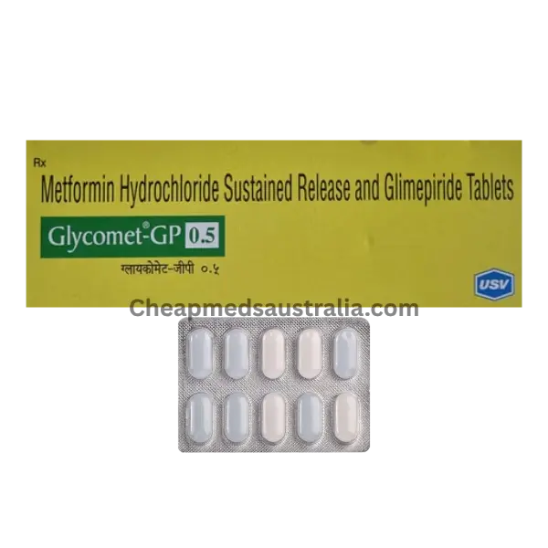 Glycomet-GP 0.5 Tablet contains metformin and glimepiride, used to manage type 2 diabetes mellitus. It helps control blood sugar by improving insulin sensitivity and increasing insulin release. It is usually taken once daily with meals to reduce the risk of low blood sugar. Common side effects may include nausea, dizziness, headache, hypoglycemia, and stomach upset, which are generally mild and manageable.