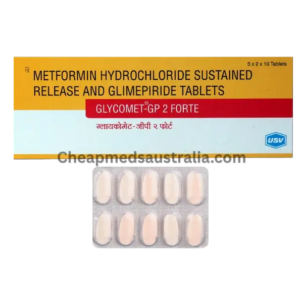Glycomet-GP 2 Forte Tablet is a combination of metformin and glimepiride used for managing type 2 diabetes mellitus. It helps control blood sugar by reducing glucose production in the liver, improving insulin sensitivity, and increasing insulin release from the pancreas. This dual-action support promotes steady glucose levels throughout the day. It is generally taken with meals, and may cause mild side effects such as nausea, dizziness, or hypoglycemia.