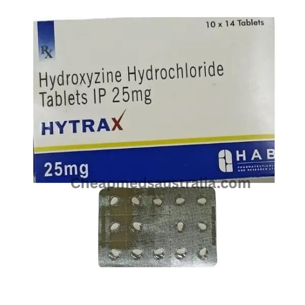 Hytrax 25 mg contains Hydroxyzine and is used to help with anxiety, allergies, itching, and skin problems. It works by calming your body and reducing allergic reactions. It can also help you sleep better. Common side effects include feeling sleepy, dry mouth, dizziness, and mild headache.