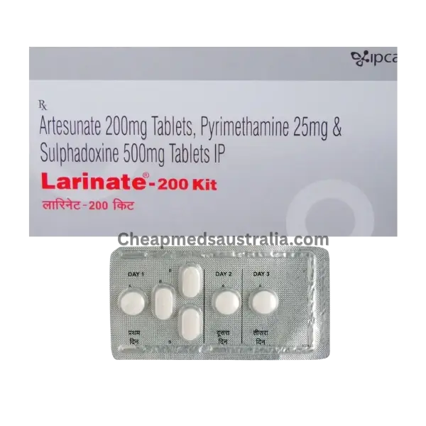 Larinate 200 Kit is a combination antimalarial treatment containing artesunate, sulfadoxine, and pyrimethamine. It works by rapidly reducing malaria parasites in the bloodstream while preventing their growth. This therapy supports effective recovery and helps manage symptoms like fever and chills.