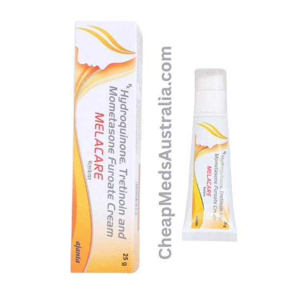 Melacare Cream is used to treat dark spots, skin hyperpigmentation, and uneven skin tone. It has Hydroquinone, Tretinoin, and Mometasone in it. For maximum results, your doctor will tell you to put on a thin layer once a day at night on the areas that need it.