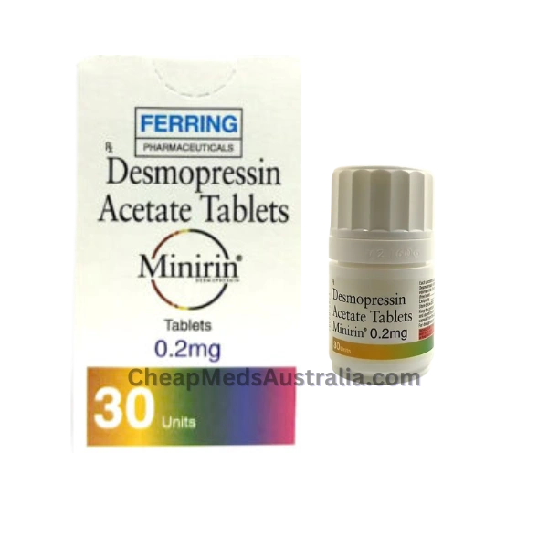 Minirin 0.2mg has desmopressin in it to help with illnesses like diabetes insipidus, nocturnal enuresis, and frequent urination. It helps with everyday urinary management safely and effectively by lowering urine production, which makes it easier to control at night and makes you more comfortable.