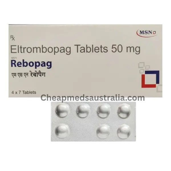 Rebopag 50 Mg is formulated with eltrombopag to help raise platelet levels in people with thrombocytopenia. It is commonly used to reduce bleeding risks and support blood health. Possible side effects include nausea, headache, tiredness, and mild liver-related changes.