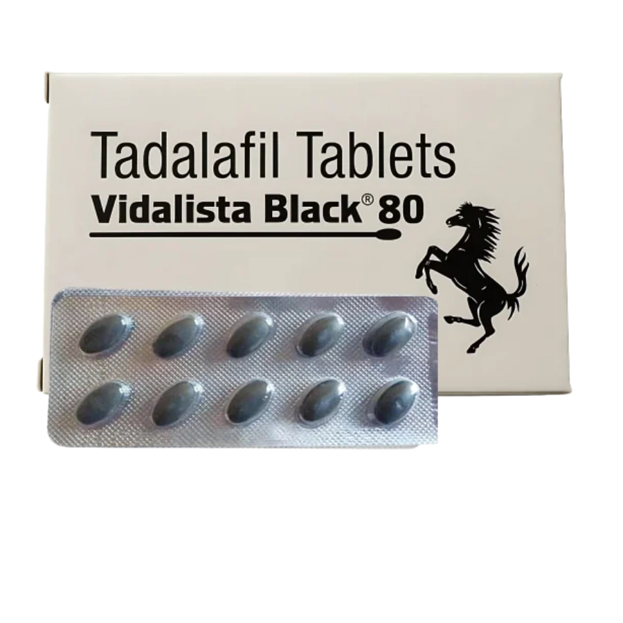Vidalista Black 80 mg is a pill that you take by mouth to treat ED. It has a strong amount of Tadalafil, which is the same active ingredient as Cialis. It is made for men who have severe erectile dysfunction and helps them get a firm, long-lasting erection when they are sexually aroused. This medicine is often used when smaller doses don’t work as well as they should.